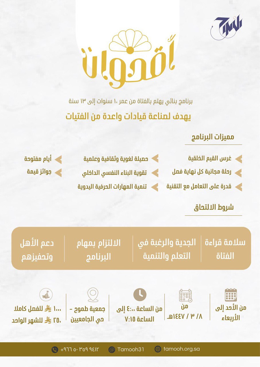برنامج بنائي يهتم بالفتيات *من عمر ١٠ إلى ١٣ سنة*، يهدف إلى صناعة قيادات واعدة من الفتيات.